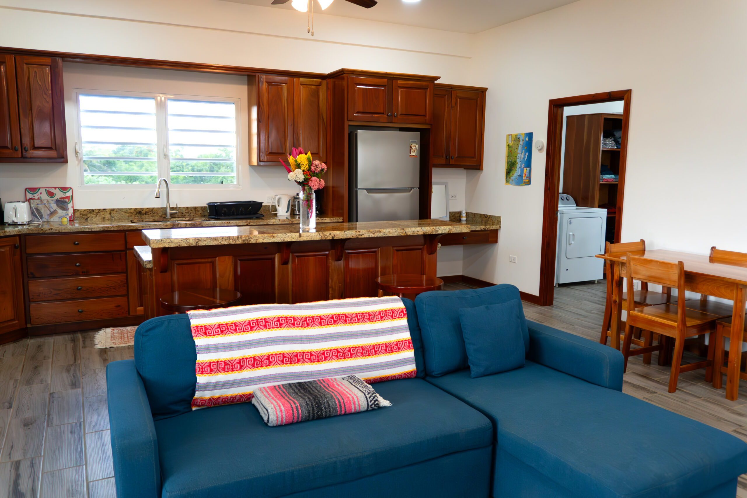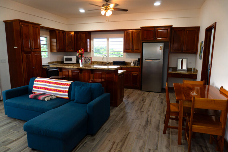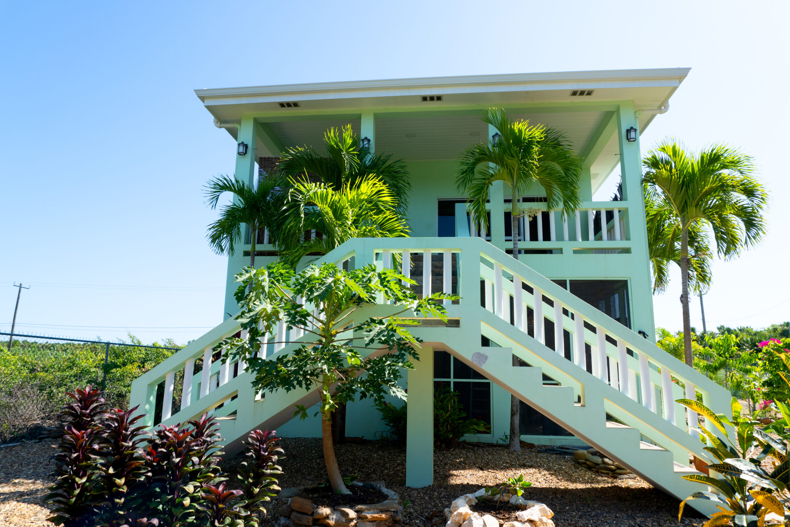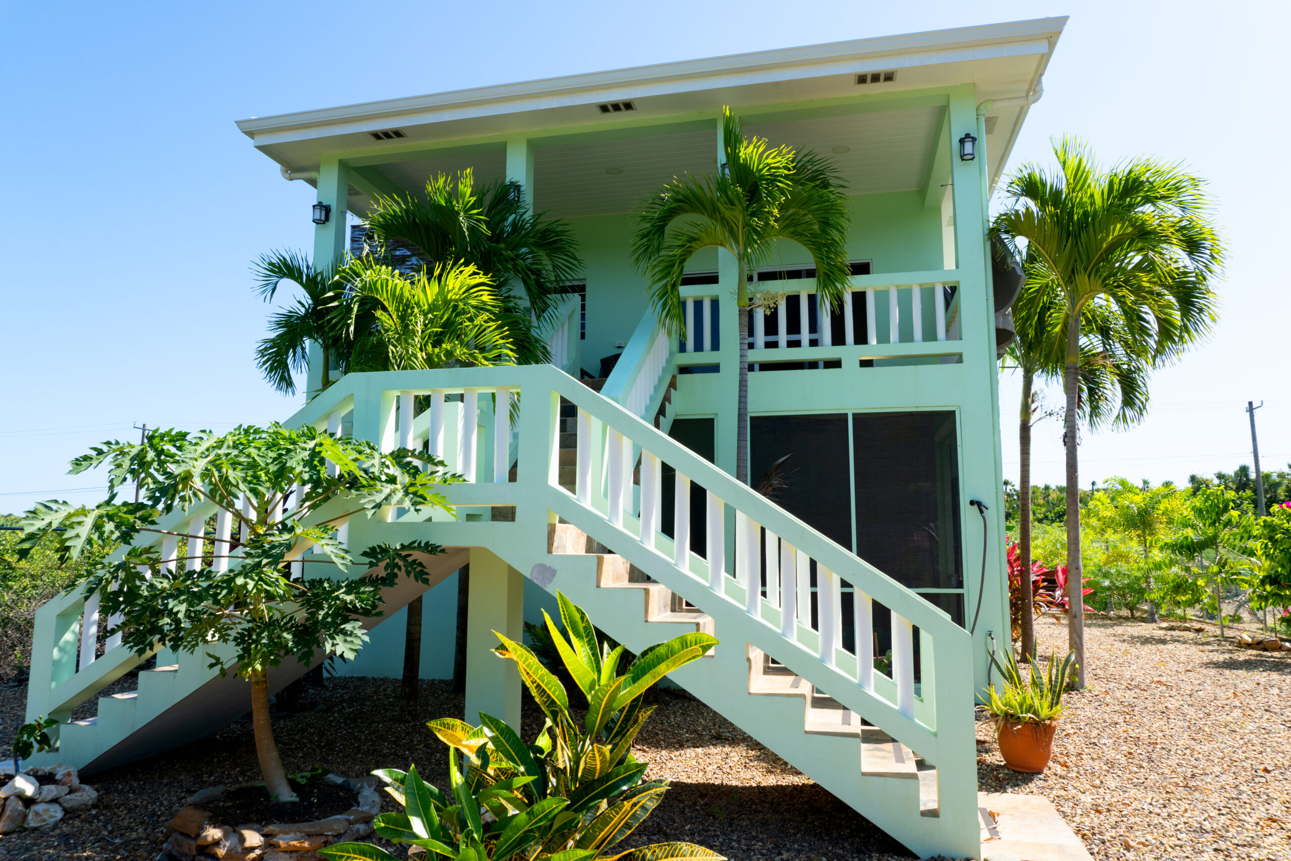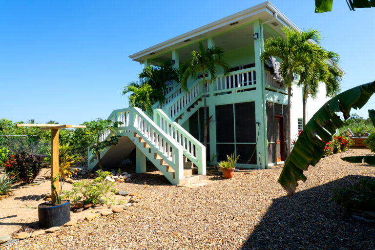 Thoughtfully designed, the main home features a two-story 1-bedroom, 1-bathroom layout, with open, airy spaces that embrace natural light and tropical breezes. Roomy 24x36ft home with a 10ft deck. Below, a fully independent 1-bedroom guest suite provides a opportunity for short-term rentals or private guest accommodations.